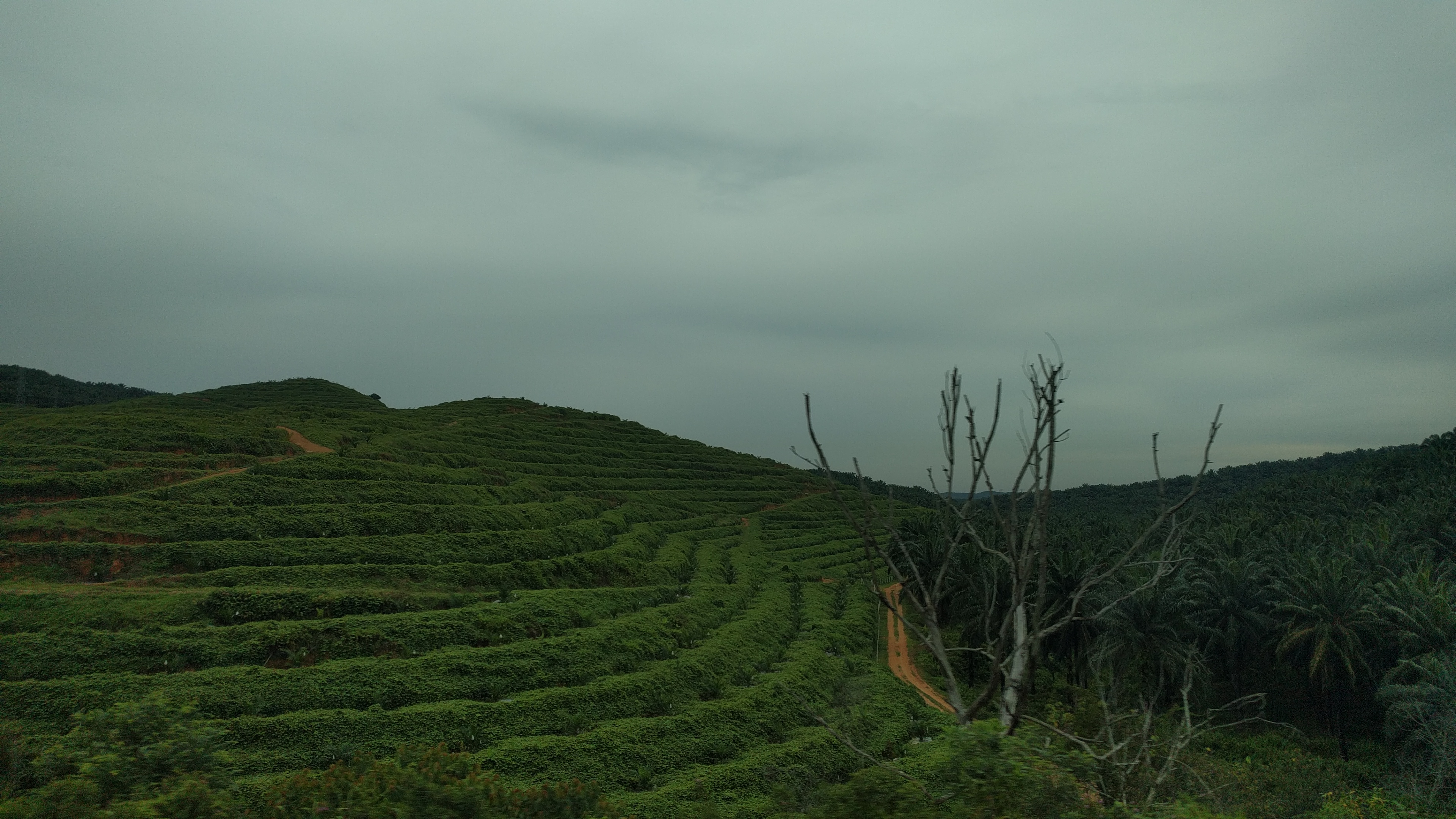 Un champ de thé et de palmier
