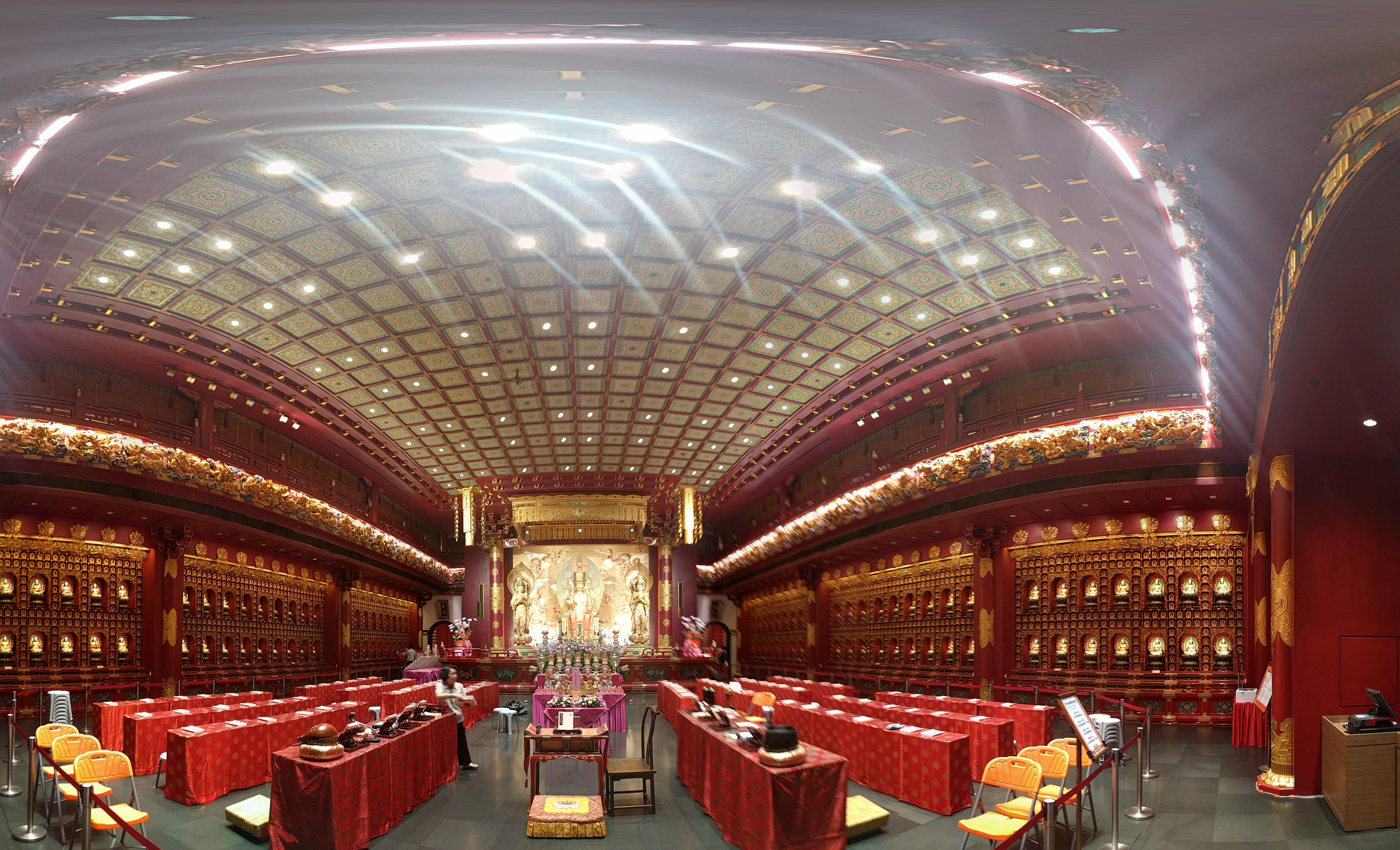 Dans le temple de la relique de la dent de Bouddha, il y a de chaque côté des statues dans des positions différentes. En tout plusieurs milliers de statues.